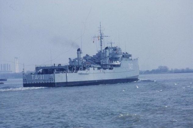 | Spanish Navy Galicia (TA31) seen in the Thames off Woolwich. Originally a dock landing ship with the US Navy as USS San Marcos (LSD-25). Commissioned in the Spanish Navy in 1971 as Galicia (TA31), number later (1980) changed to L31. Scrapped 1989. 3 May 1978. Photographs. John king. |