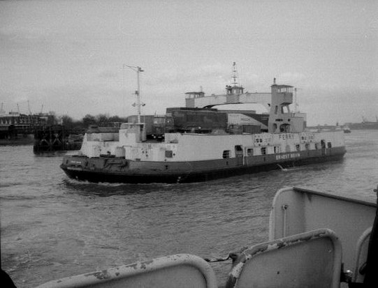 A close up view of the Ernest Bevin as it passes looking north this time. This shows the old side entrance gates to the ferry which are no longer used.